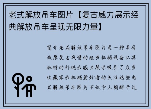 部队退役越野吊车是一种具有强大载重能力和越野性能的特种车辆,经过改造与升级可以在民用领域发挥更大的作用。本文将从多个方面详细阐述部队退役越野吊车的改造与升级过程,帮助读者了解如何购买这样的车辆。 背景信息 部队退役越野吊车是指在部队服役一段时间后被淘汰下来的越野吊车。这些车辆通常具有坚固耐用、可靠性...