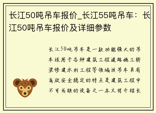 简介: 长沙8吨吊车出售,是一次难得的机会。这台吊车不仅质量可靠,而且价格实惠,物超所值。无论是用于工地施工,还是搬运重物,这台吊车都能胜任。如果你正在寻找一台性能出色、价格合理的吊车,那么这台长沙8吨吊车绝对是你的不二选择。 小标题1:性能出色,高效完成工作 高性能引擎,提升工作效率 长沙8吨吊车...