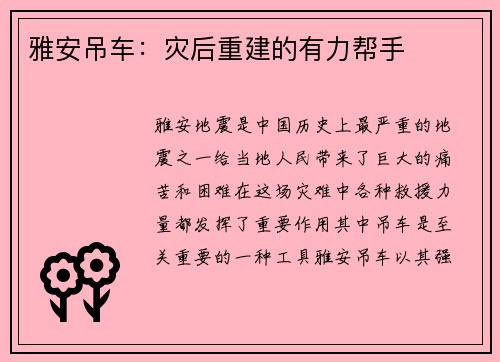 【开头】 连云港是中国东部沿海城市,拥有发达的港口和交通网络,是江苏省重要的经济中心之一。在这个城市中,二手小吊车成为了很多建筑、物流等行业的必备工具。而连云港二手吊车处理网车则成为了人们购买和处理二手小吊车的首选平台。本文将为大家介绍连云港二手吊车处理网车,帮助用户了解该平台的优势和使用方法。 【...